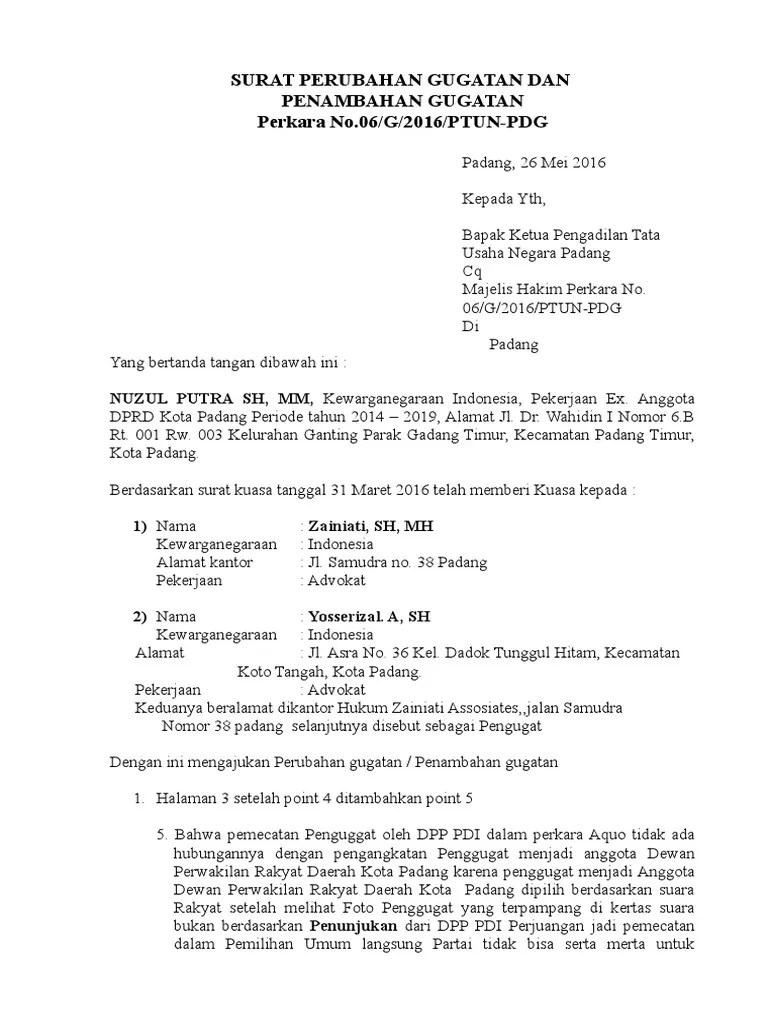 Contoh surat gugatan dan surat kuasa; Contoh surat kuasa khusus tergugat. Surat gugatan merupakan salah satu contoh dari sekian banyak surat resmi sehingga ketika anda menulis atau membuat surat ini maka anda harus benar benar memperhatikan mengenai bahasa dan diksi yang anda gunakan. Contoh gugatan badan hukum perdata. Contoh gugatan ptun jakarta timur. Berikut contoh surat gugatan dan surat kuasa pada pengadilan tata usaha negara padang : Contoh surat kuasa permohonan intervensi. Surat gugatan merupakan salah satu contoh dari sekian banyak surat resmi sehingga ketika anda menulis atau membuat surat ini maka anda harus benar benar memperhatikan mengenai bahasa dan diksi yang anda gunakan. Contoh surat kuasa khusus penggugat. Academia edu is a platform for academics to share research papers. 510/795/unp/2010, tanggal 01 agustus 2010; Surat gugatan merupakan salah satu contoh dari sekian banyak surat resmi sehingga ketika anda menulis atau membuat surat ini maka anda harus benar benar memperhatikan mengenai bahasa dan diksi yang anda gunakan. 510/795/unp/2010, tanggal 01 agustus 2010 oleh tergugat jelas telah merugikan kepentingan penggugat;